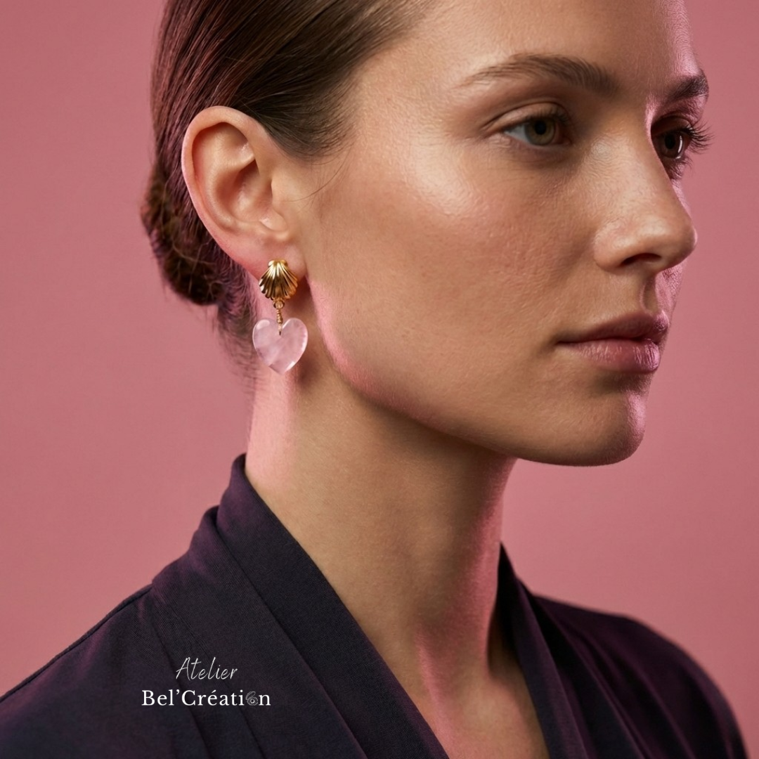 Boucles d’oreilles Coeur en Quartz Rose "Seana"