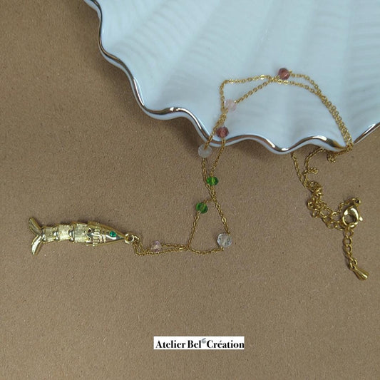 Collier Pendentif Poisson en Cristal de Roche Naturel « Harmonie »