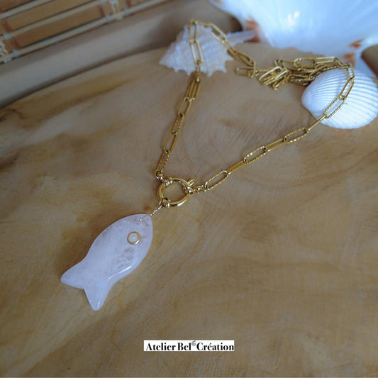 Collier Pendentif Poisson en Cristal de Roche Naturel « Harmonie »
